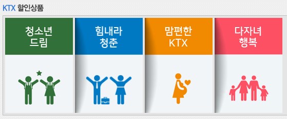 - 대상 : 인터넷 특가, 청소년 드림, 힘내라 청춘, 맘편한 KTX, 다자녀행복, 기차누리 할인