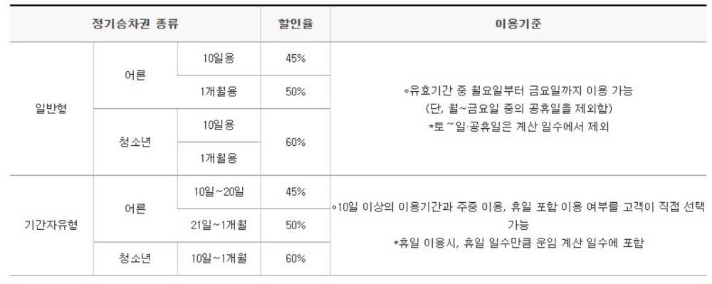 - 정기승차권은 기명식 승차권으로 승차권에 표기된 고객에 한하여 이용